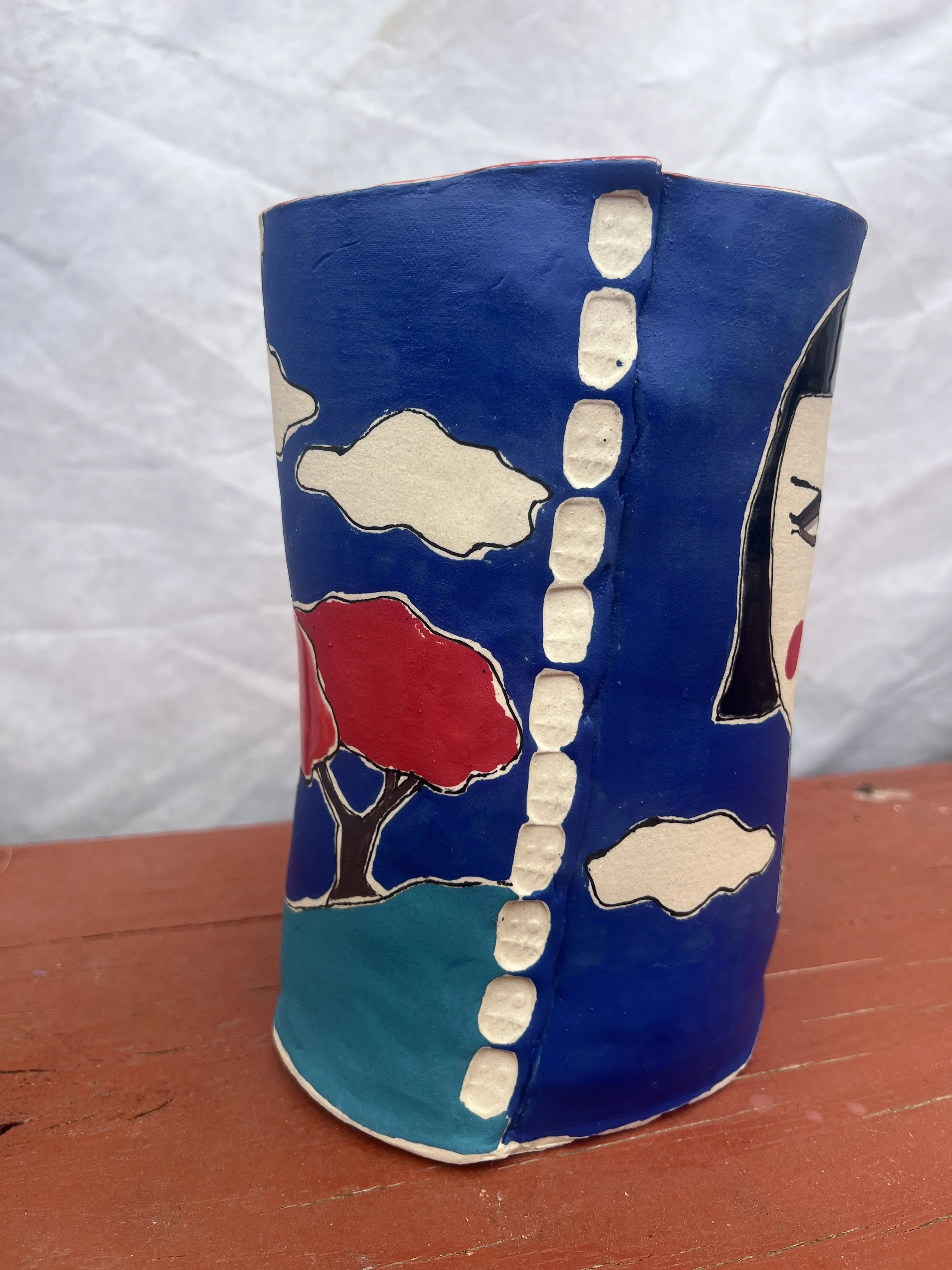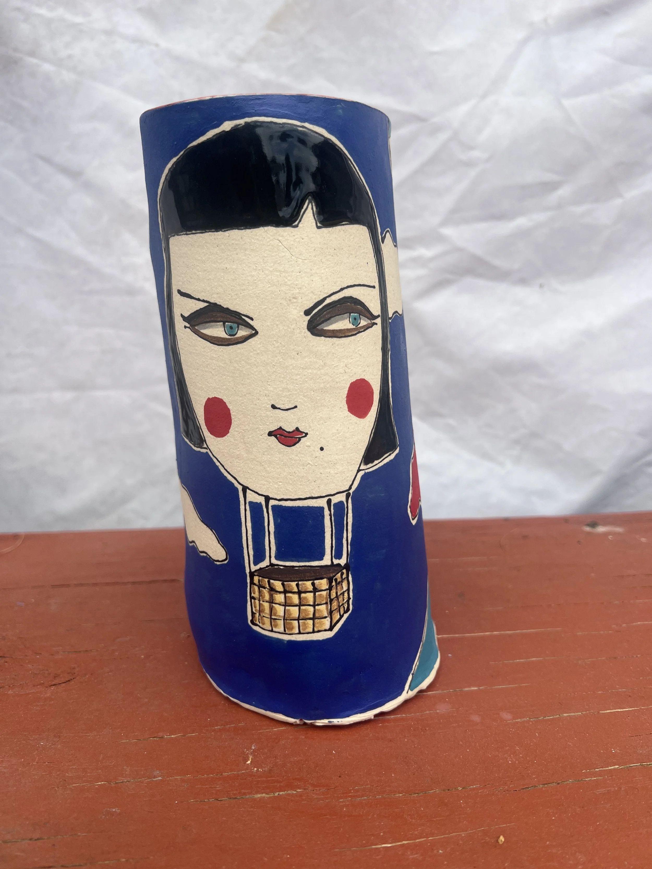 Debbie Sue is wheel thrown stoneware vessel. She could be used as a vase, utensil holder or as a piece of art or ritual figure.