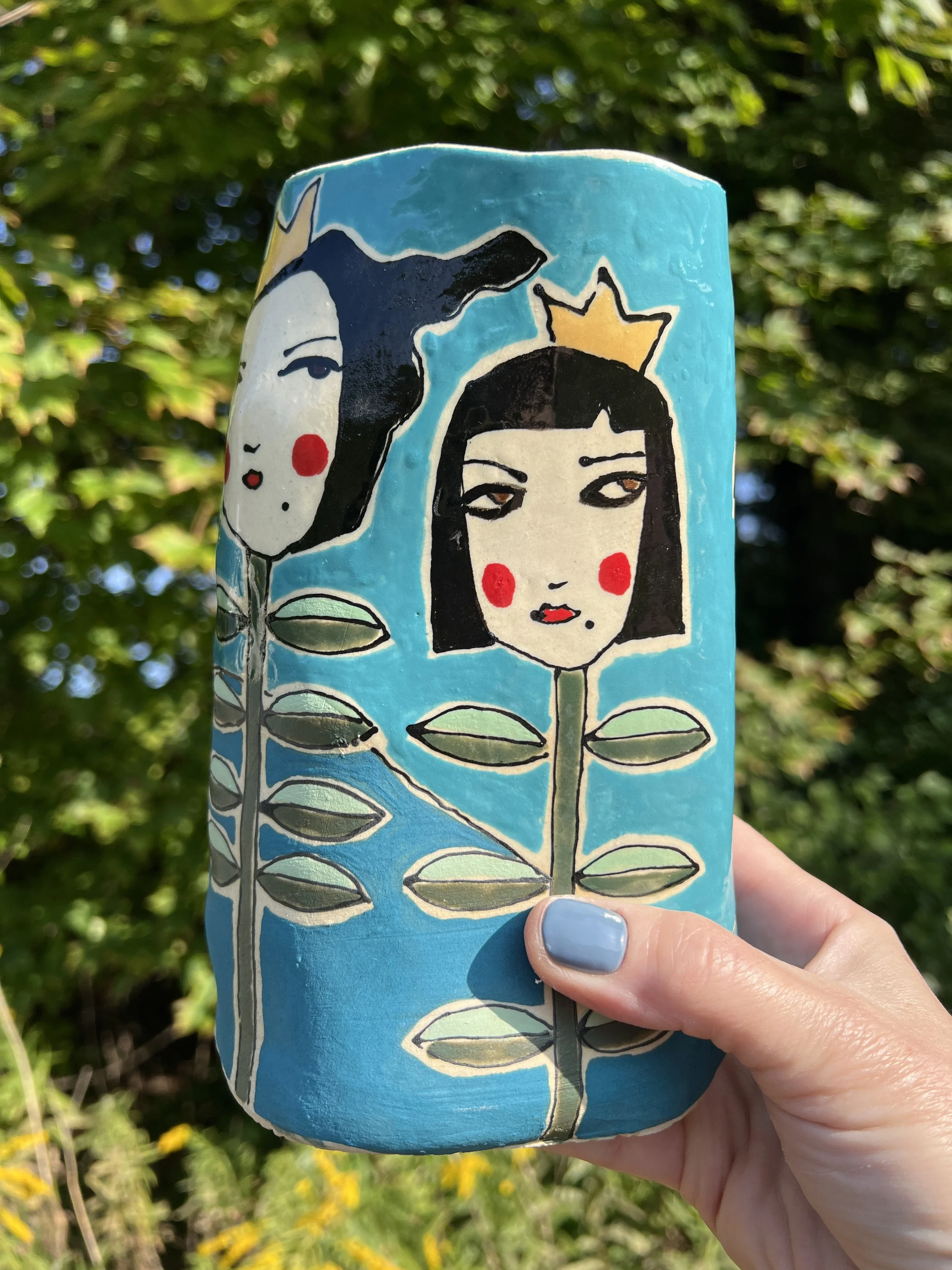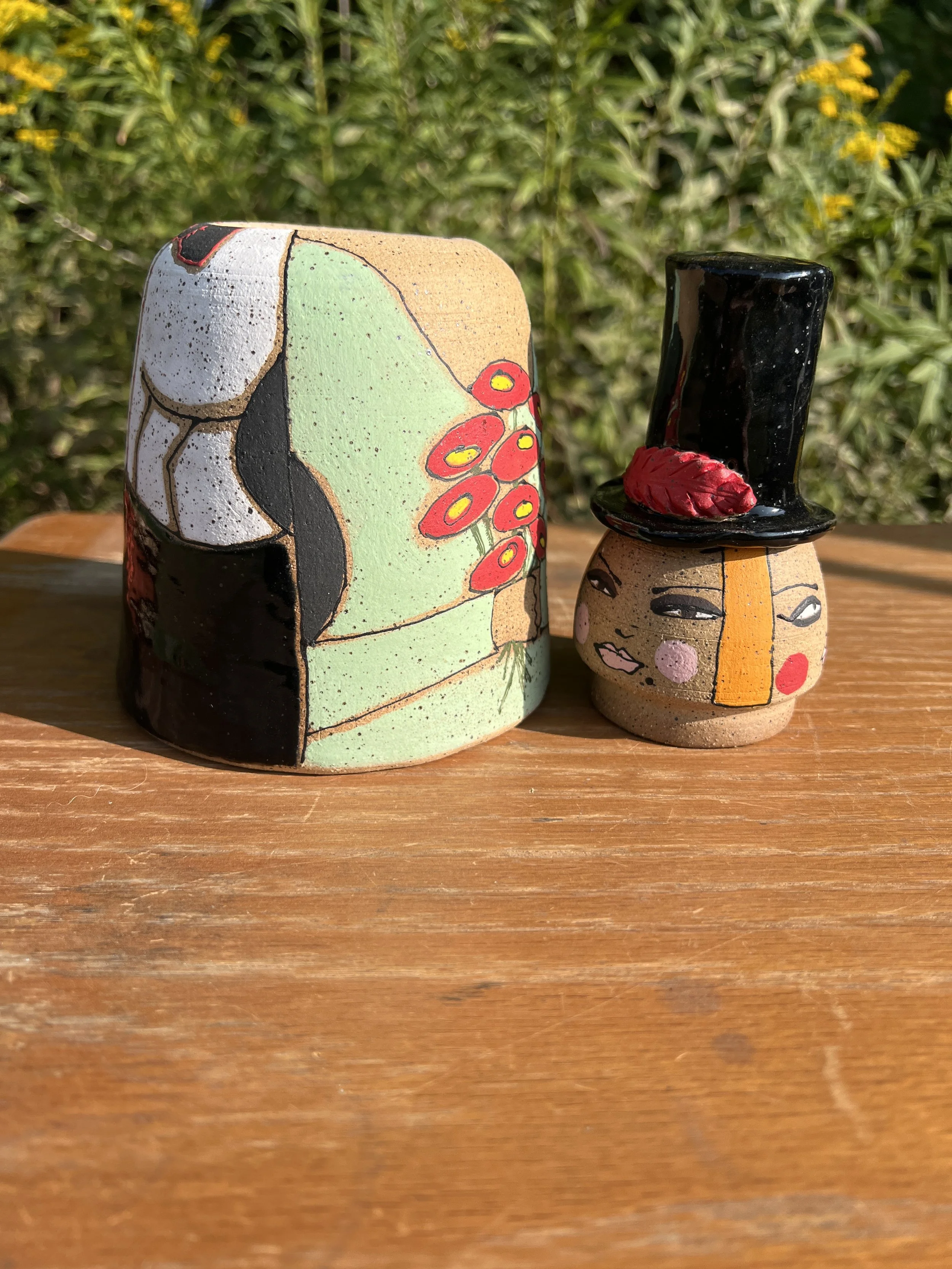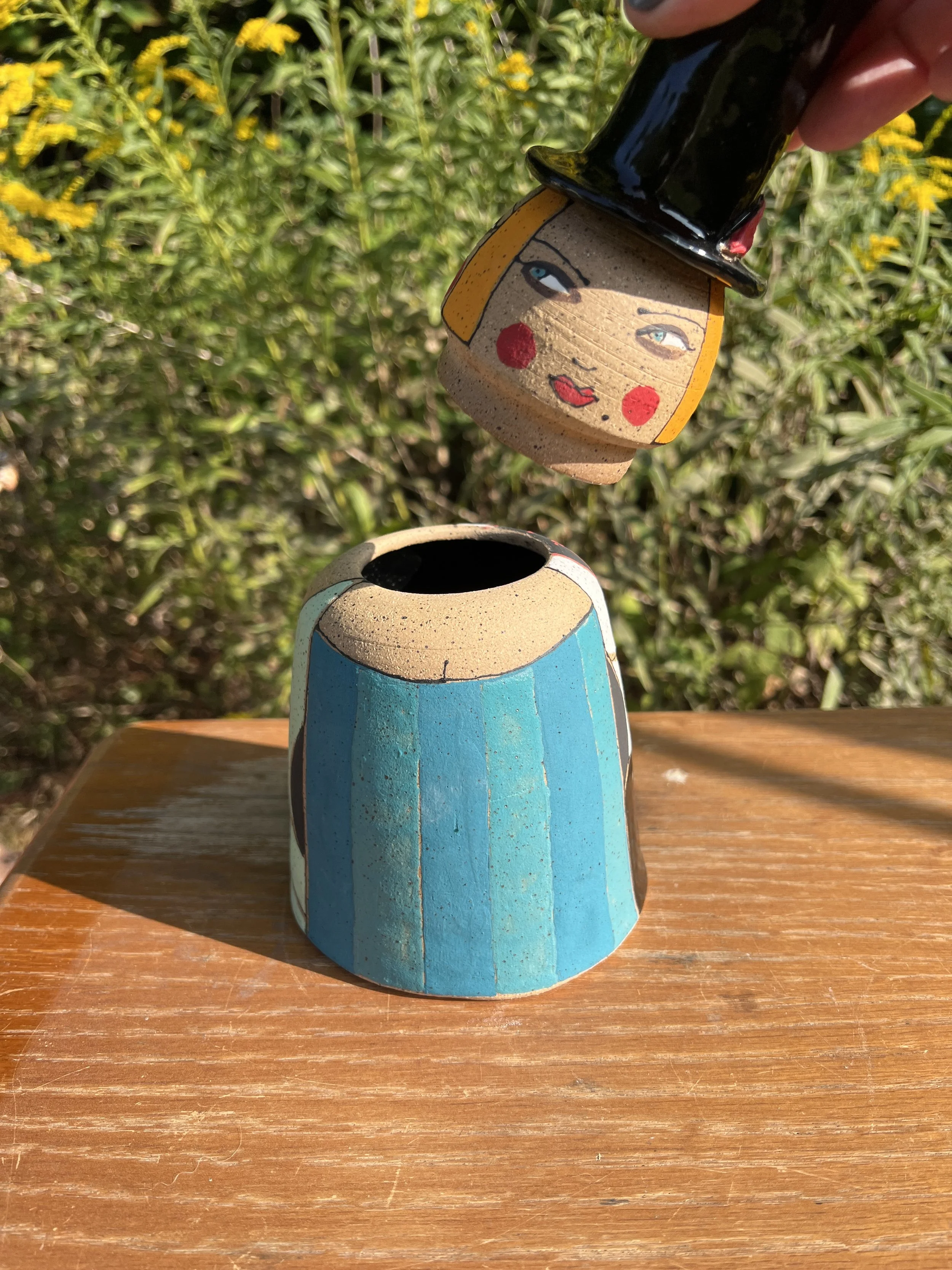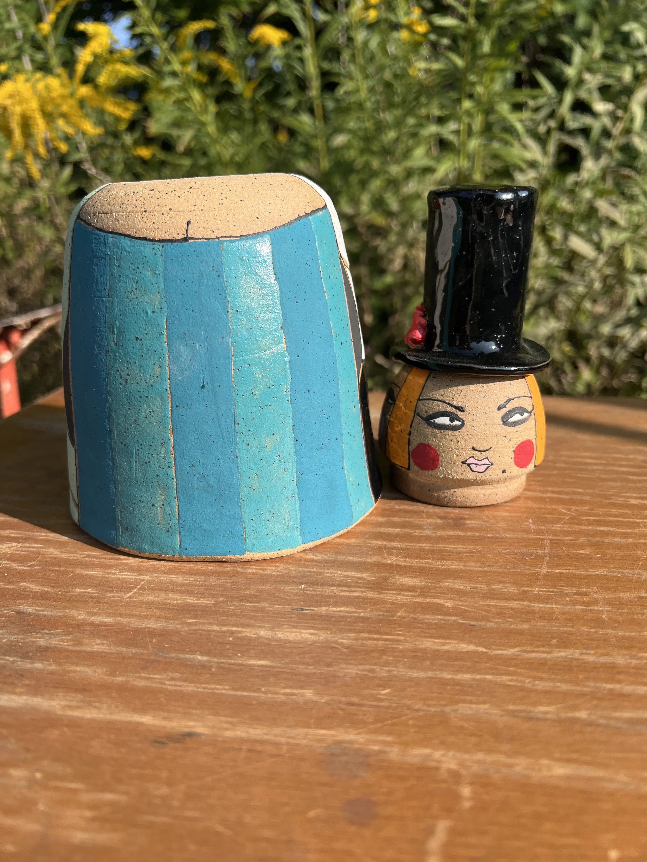 This mod lidded jar is the perfect thing for your kitchen or bathroom, bedroom or office. Great storage for all sorts of your storables. The bottom of this jar is decorated with underglaze with a matte finish. The lid is decorated with stoneware glaze inside and out as is the inside of the vessel. It would make a cool present for someone getting their first apartment, adopting a cat, growing a garden...whatever. :) The inside of the lid has two small cracks that do not affect the function of the pot and the price reflects this small defect. Thanks for looking!
