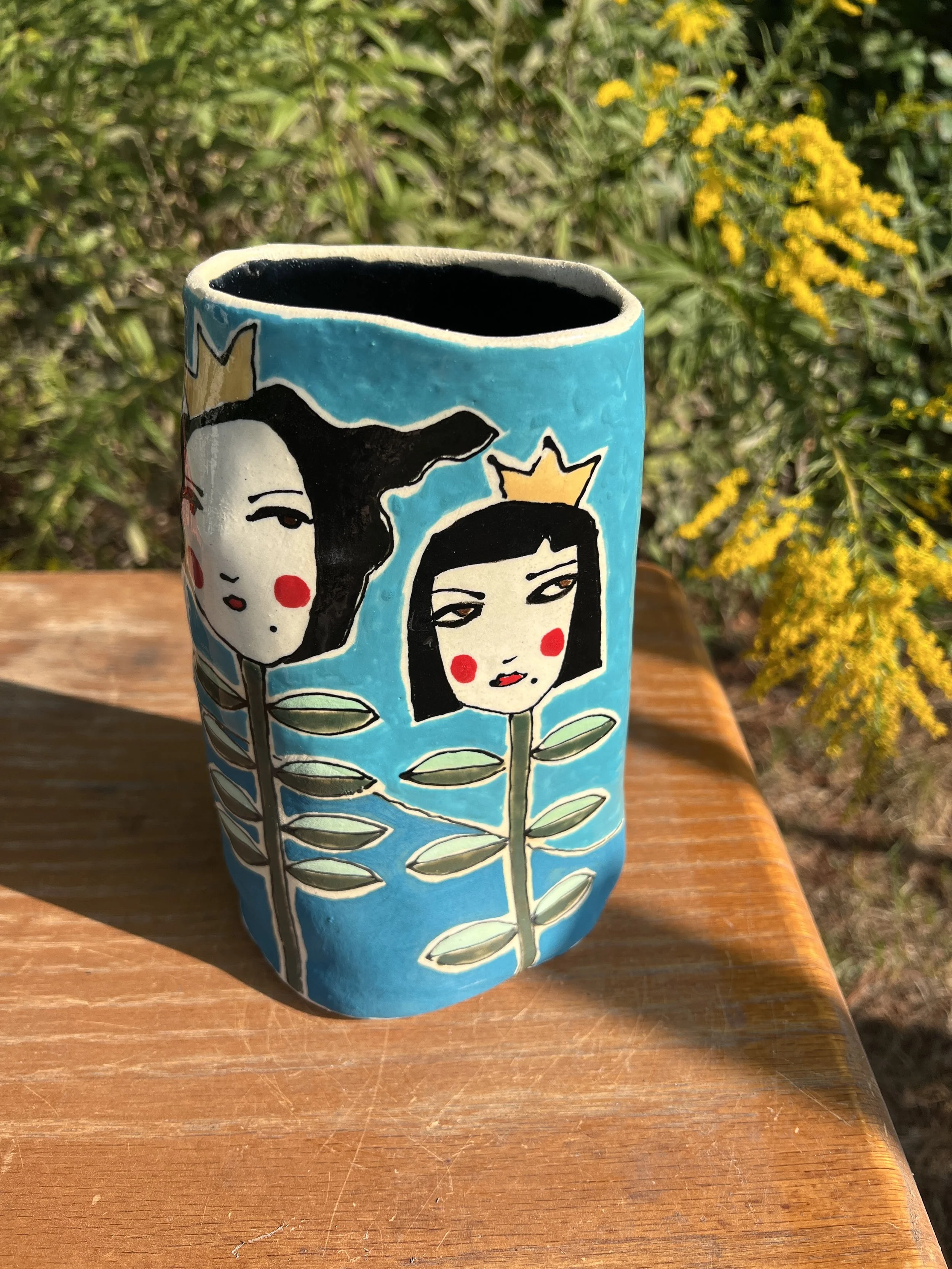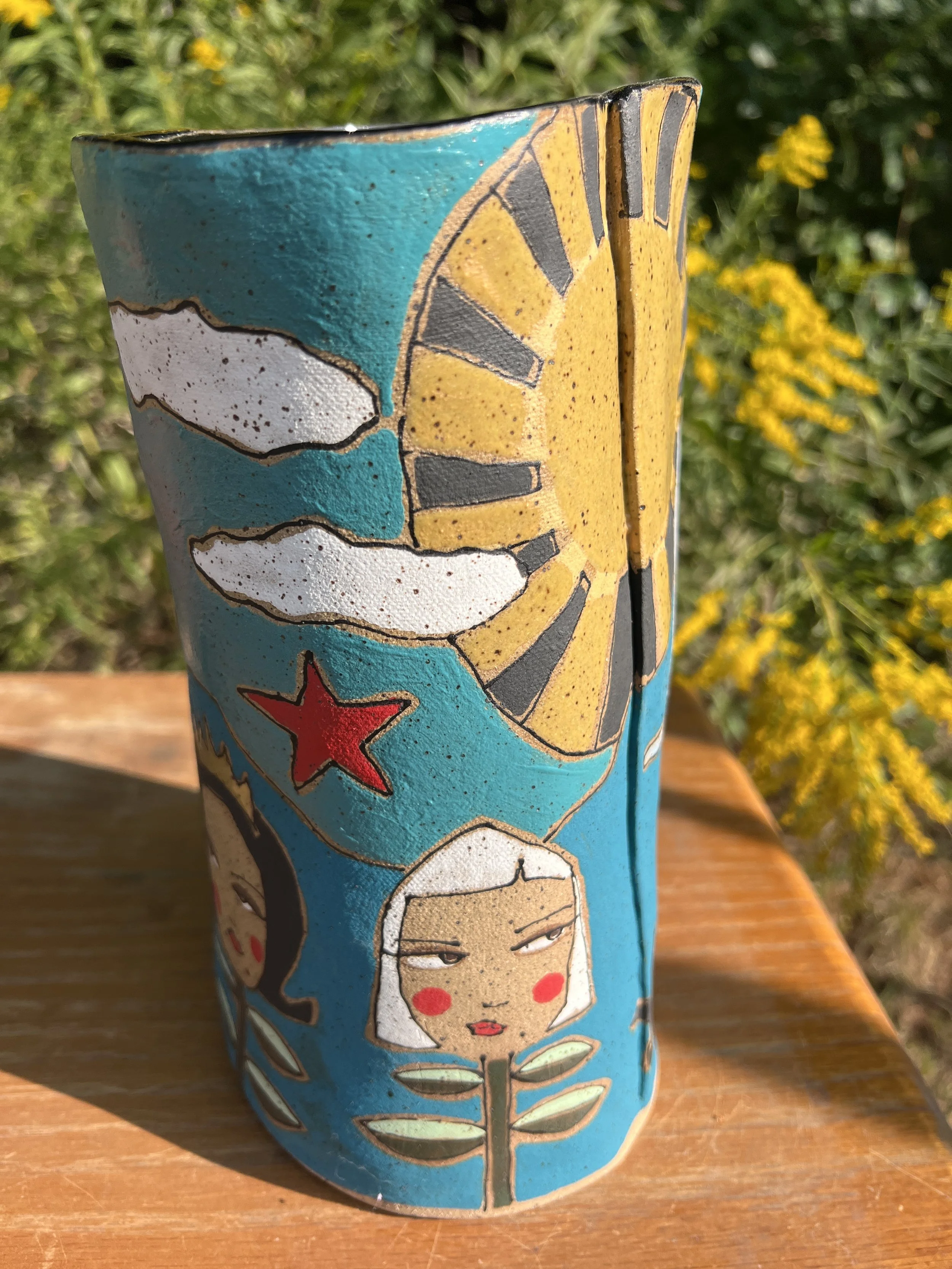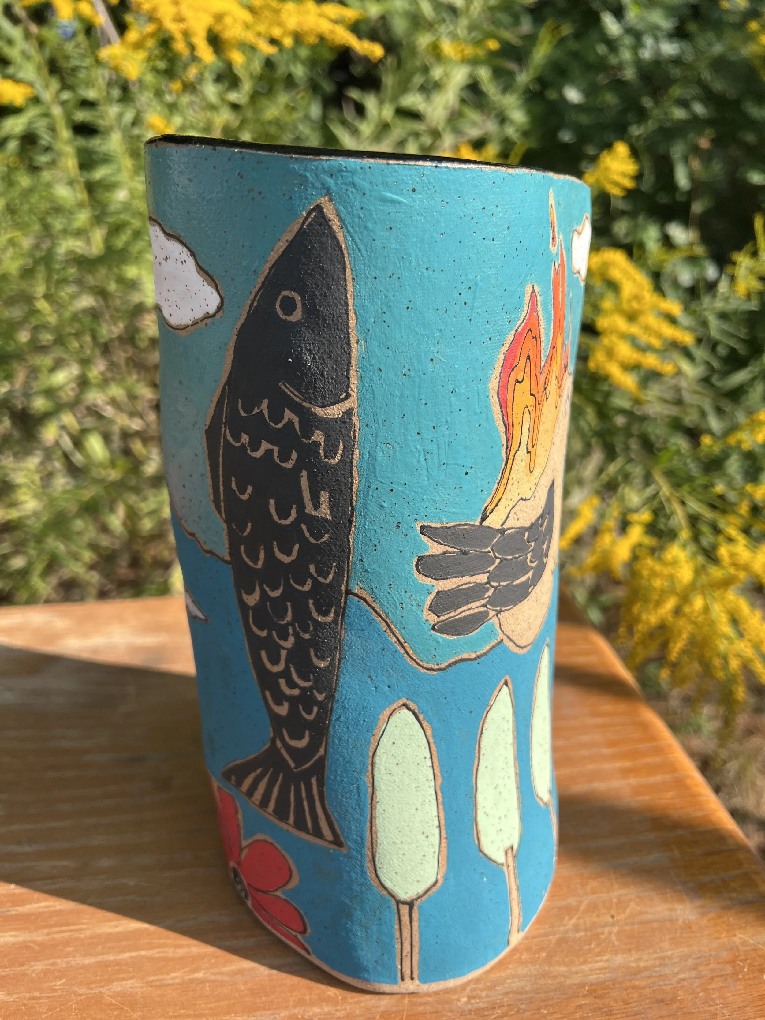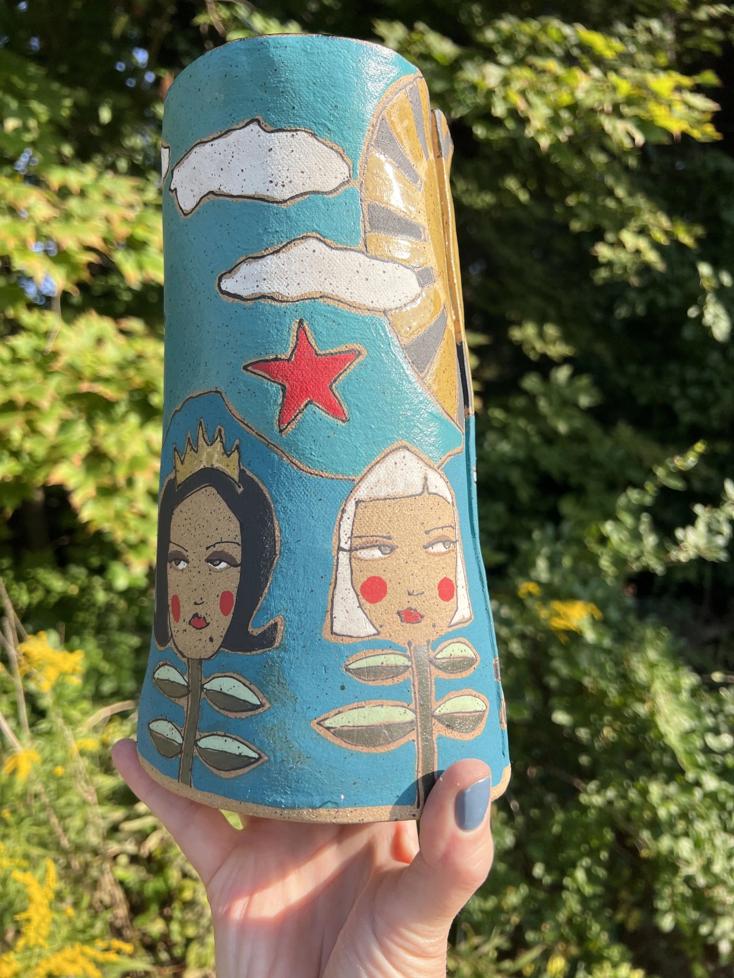 This mod lidded jar is the perfect thing for your kitchen or bathroom, bedroom or office. Great storage for all sorts of your storables. The bottom of this jar is decorated with underglaze with a matte finish. The lid is decorated with stoneware glaze inside and out as is the inside of the vessel. It would make a cool present for someone getting their first apartment, adopting a cat, growing a garden...whatever. :) The inside of the lid has two small cracks that do not affect the function of the pot and the price reflects this small defect. Thanks for looking!