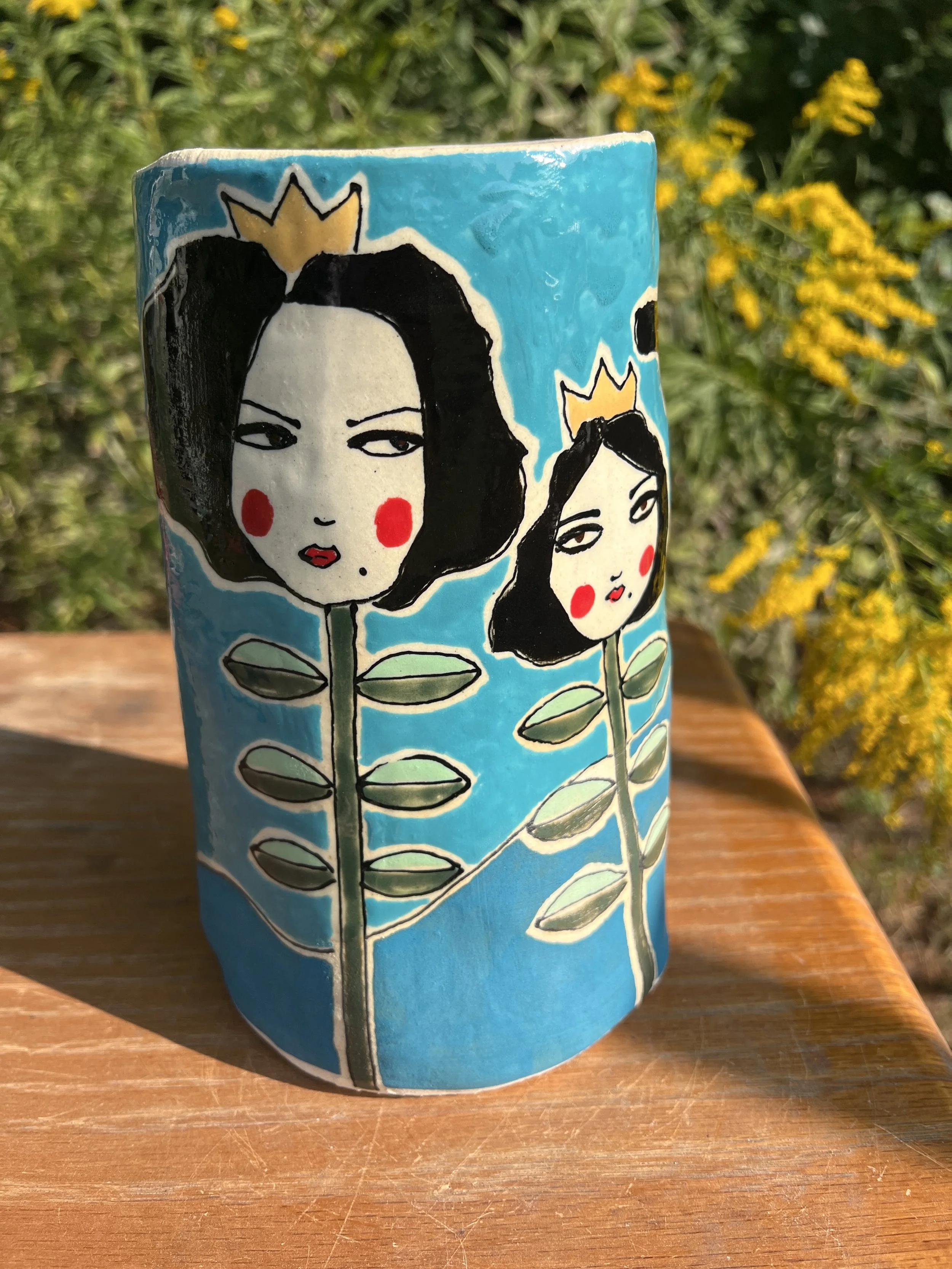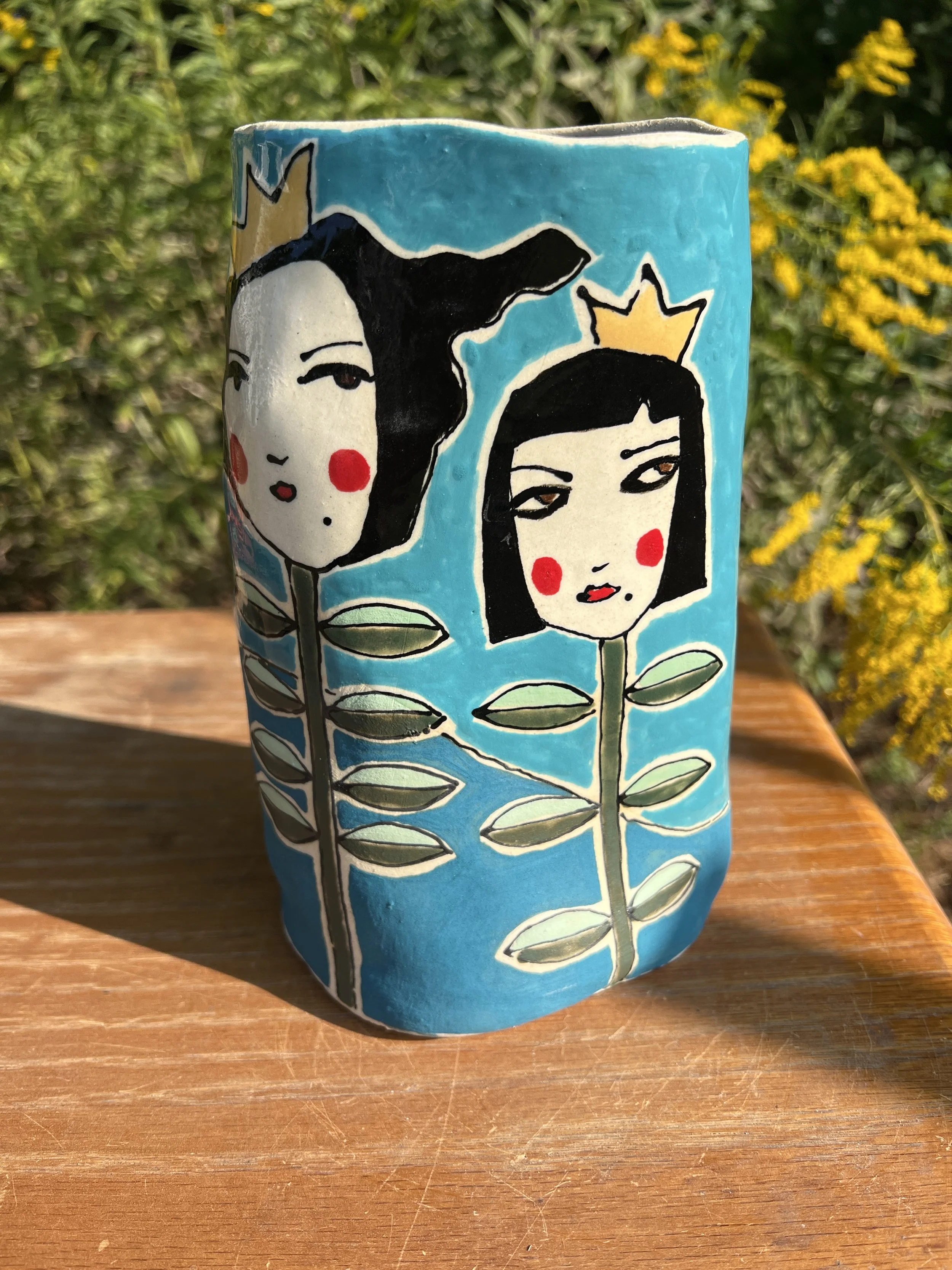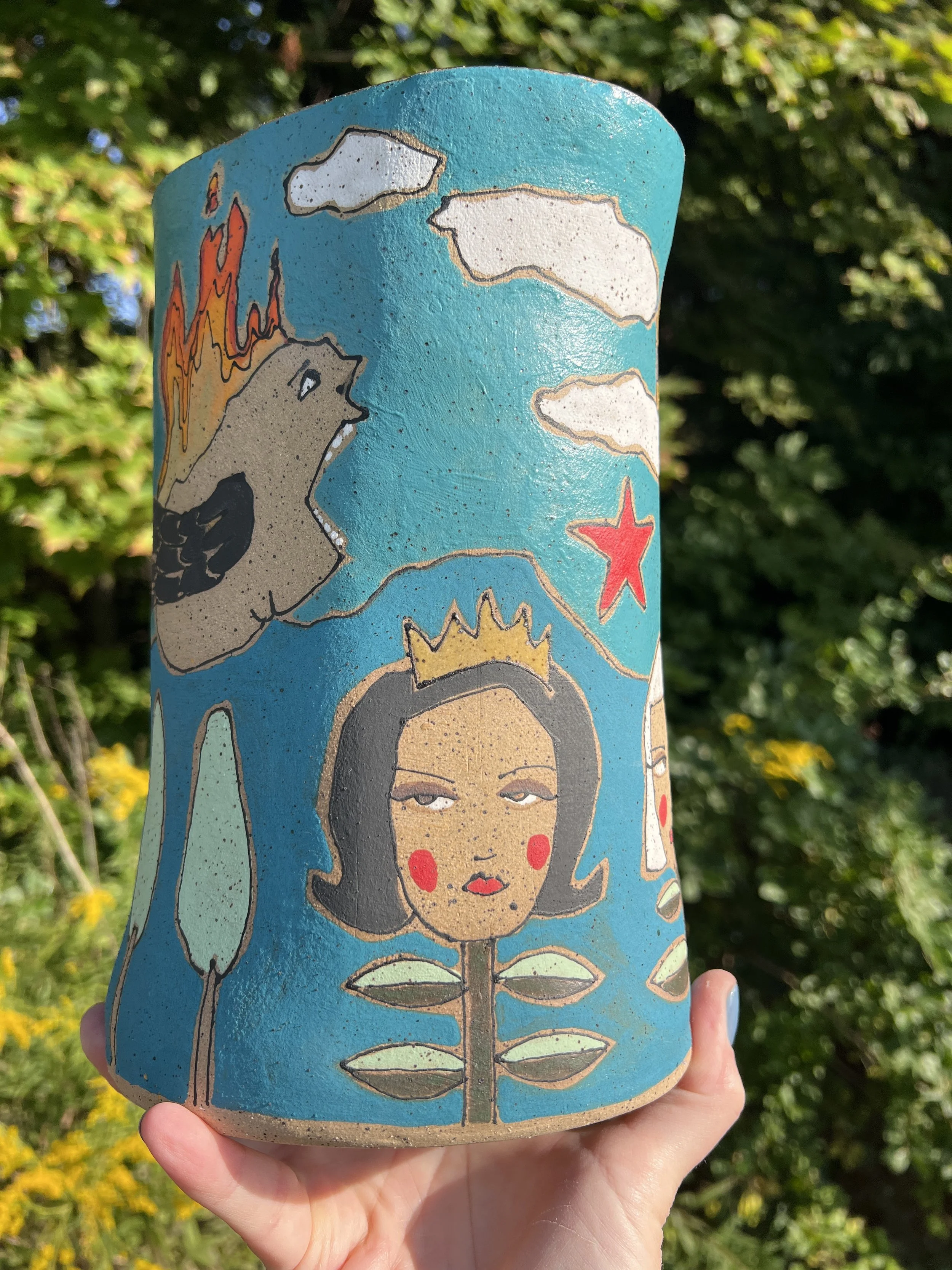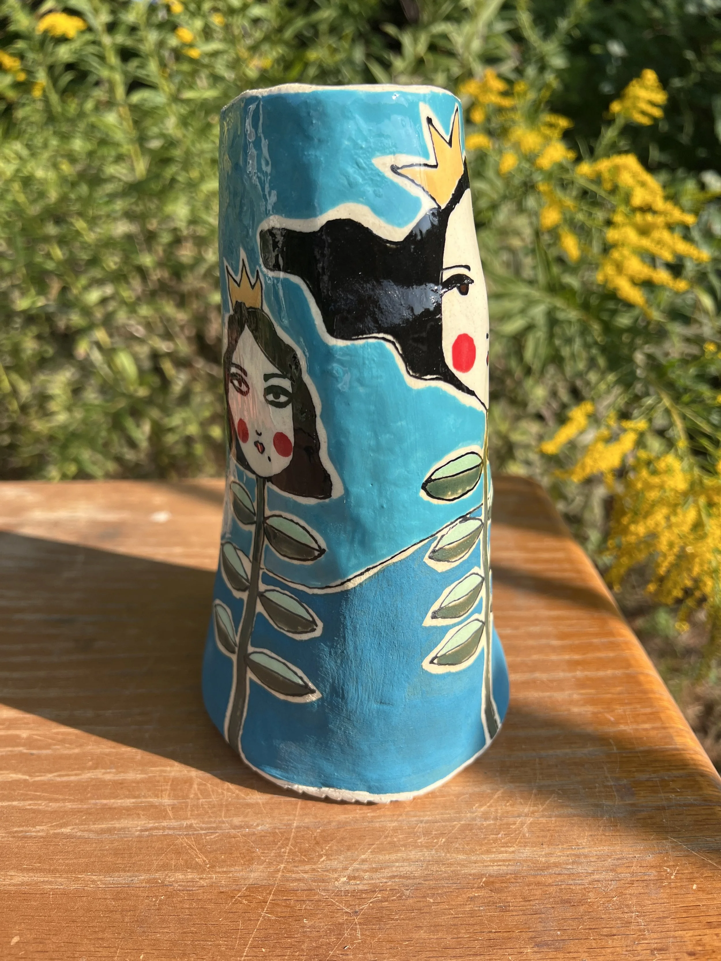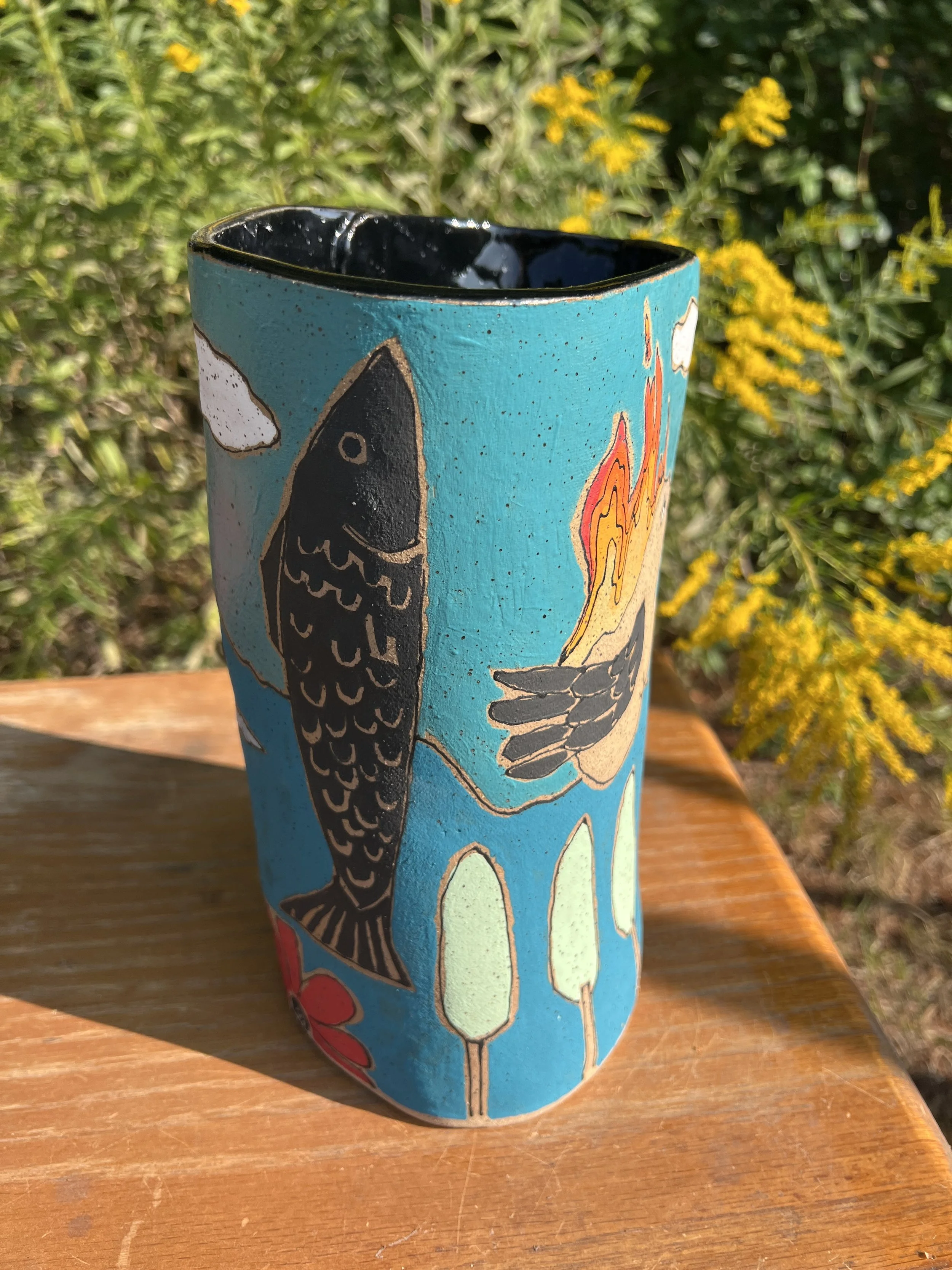 This mod lidded jar is the perfect thing for your kitchen or bathroom, bedroom or office. Great storage for all sorts of your storables. The bottom of this jar is decorated with underglaze with a matte finish. The lid is decorated with stoneware glaze inside and out as is the inside of the vessel. It would make a cool present for someone getting their first apartment, adopting a cat, growing a garden...whatever. :) The inside of the lid has two small cracks that do not affect the function of the pot and the price reflects this small defect. Thanks for looking!