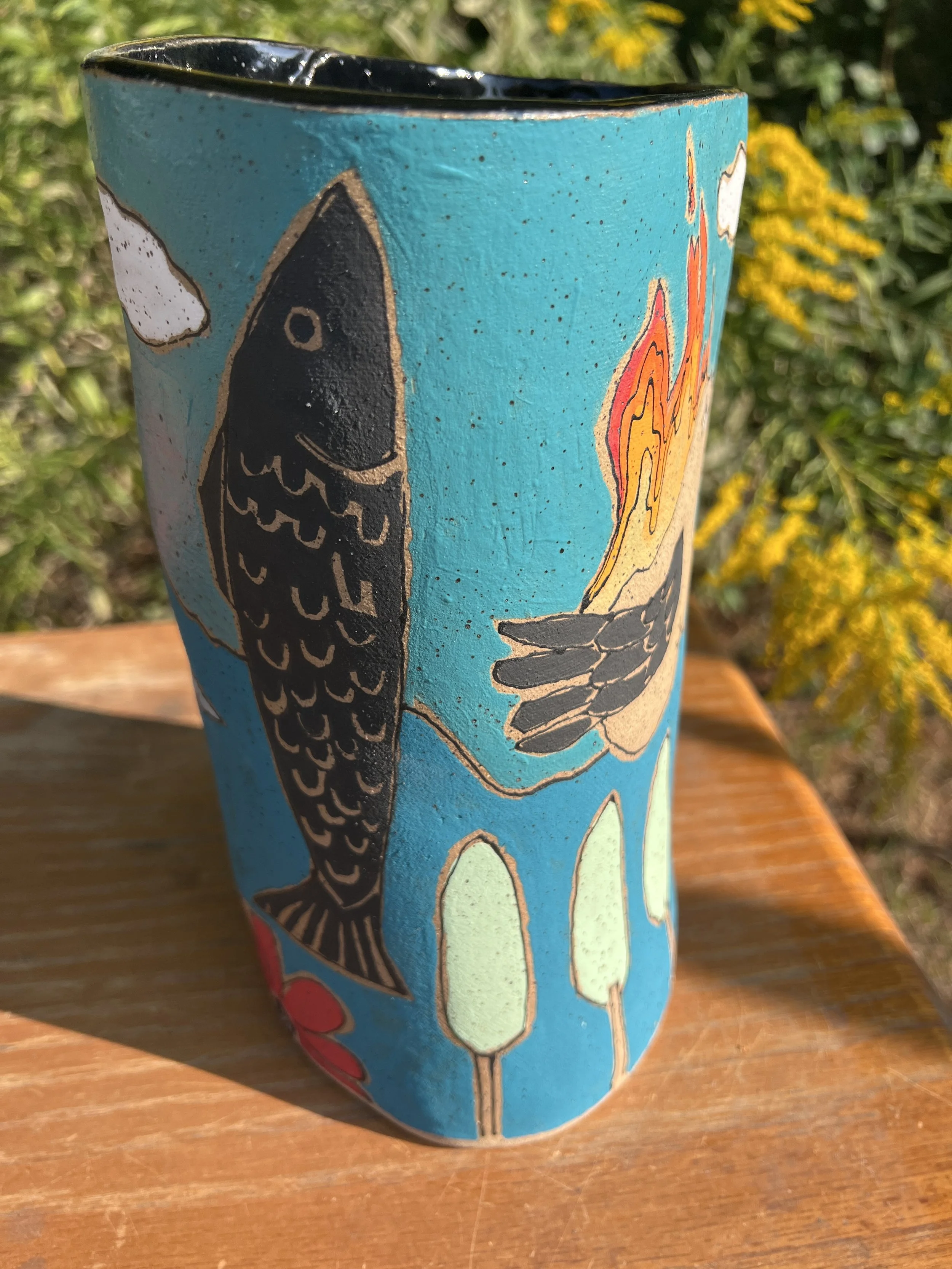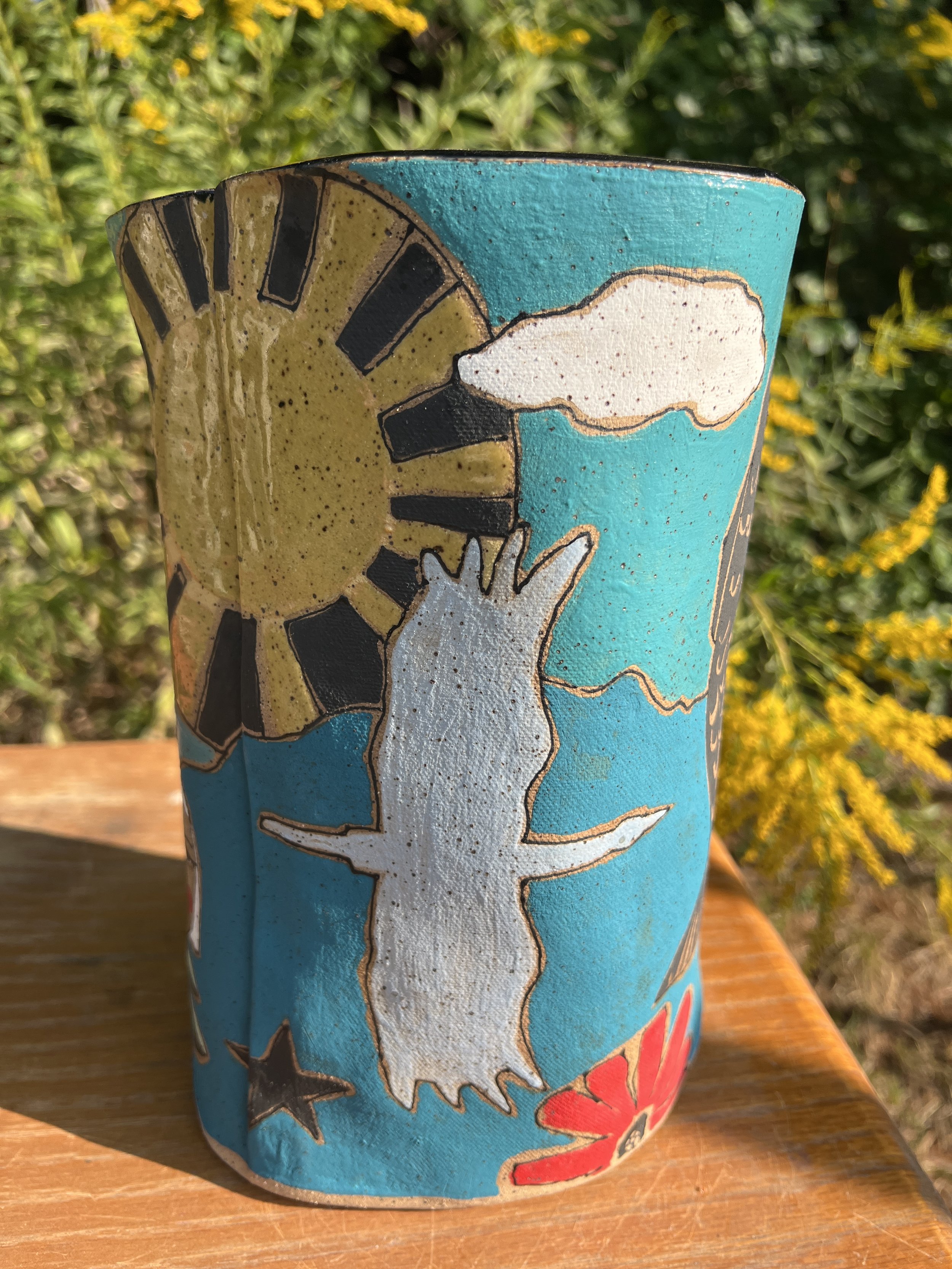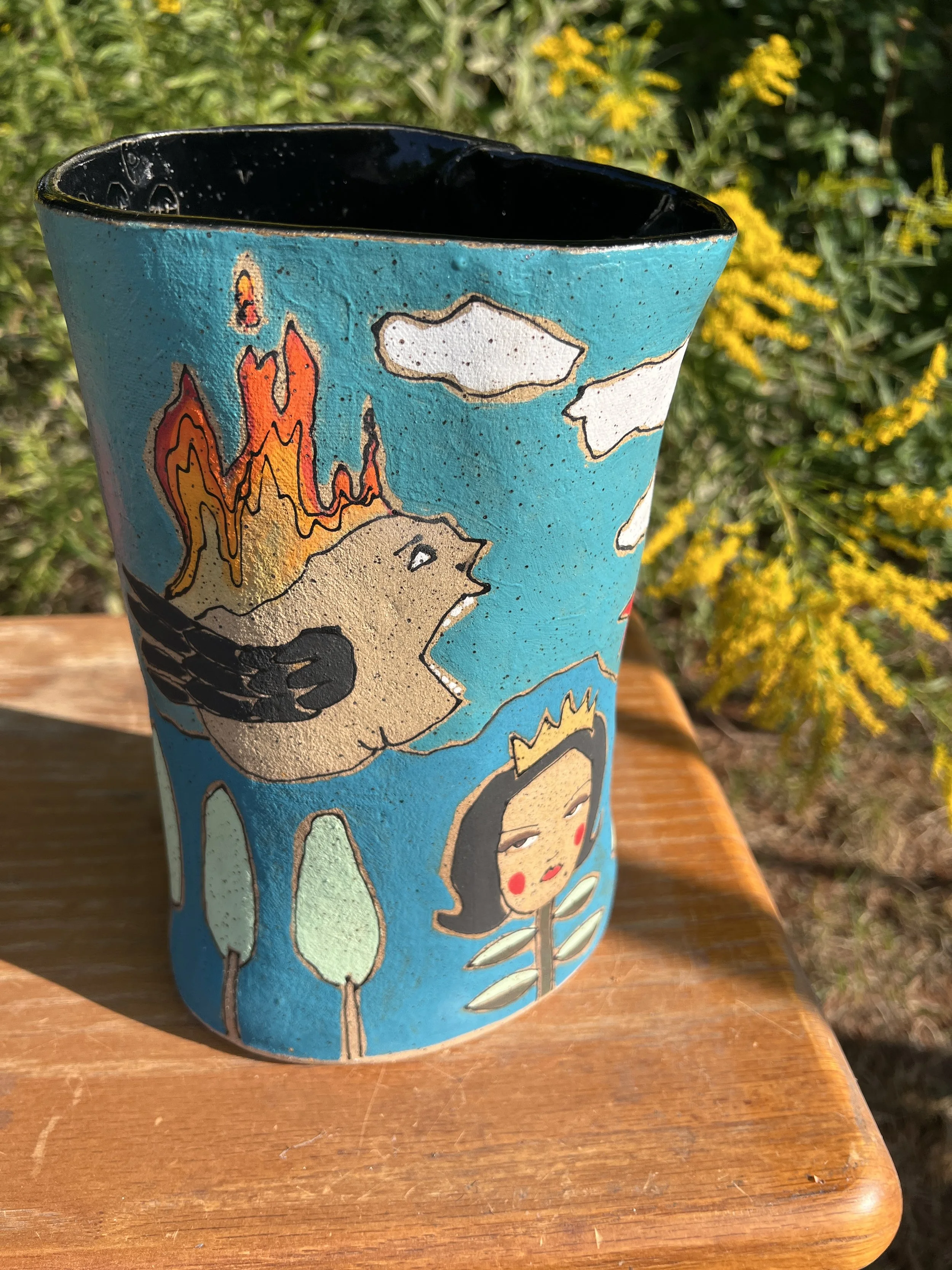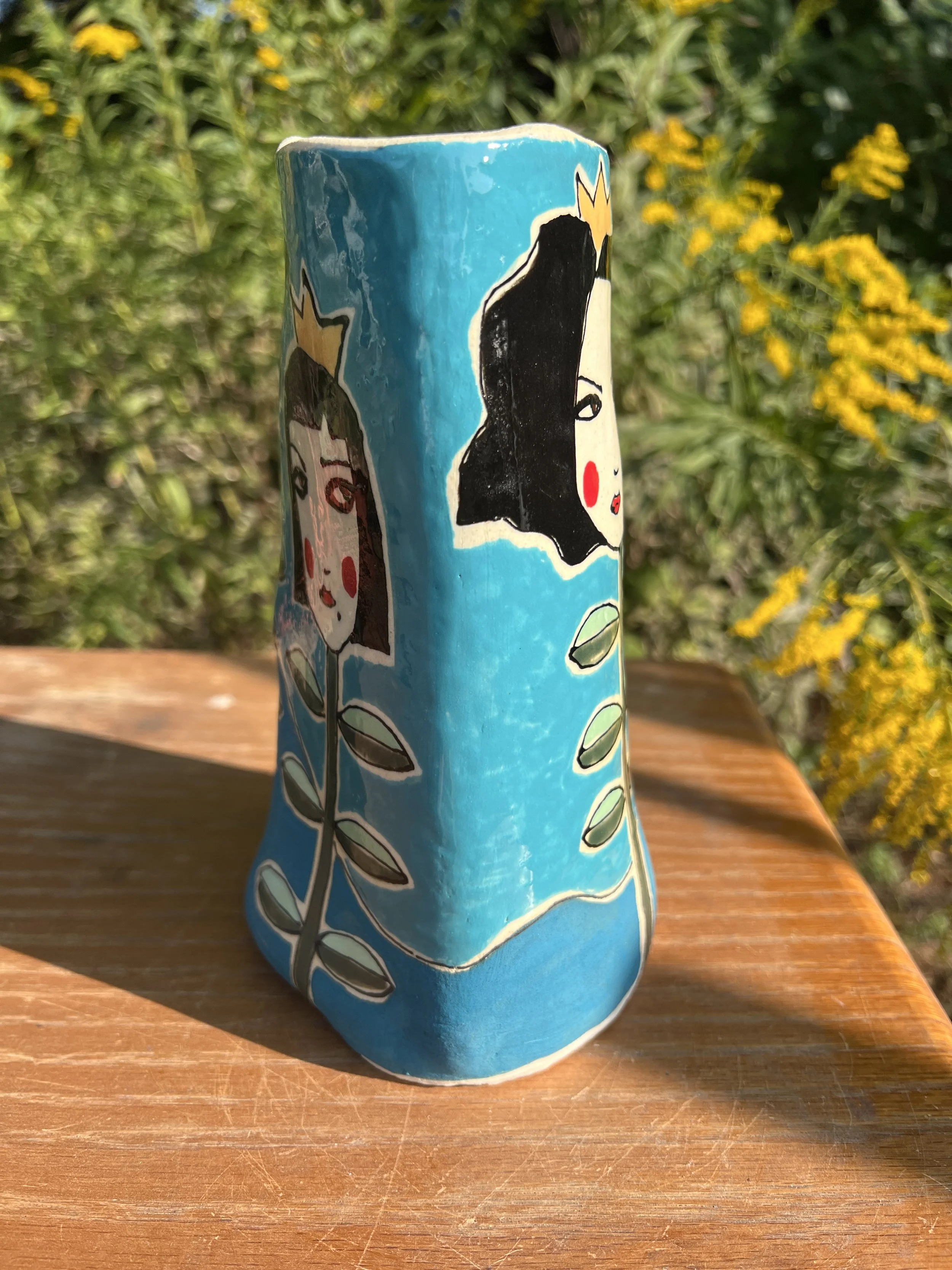 This mod lidded jar is the perfect thing for your kitchen or bathroom, bedroom or office. Great storage for all sorts of your storables. The bottom of this jar is decorated with underglaze with a matte finish. The lid is decorated with stoneware glaze inside and out as is the inside of the vessel. It would make a cool present for someone getting their first apartment, adopting a cat, growing a garden...whatever. :) The inside of the lid has two small cracks that do not affect the function of the pot and the price reflects this small defect. Thanks for looking!